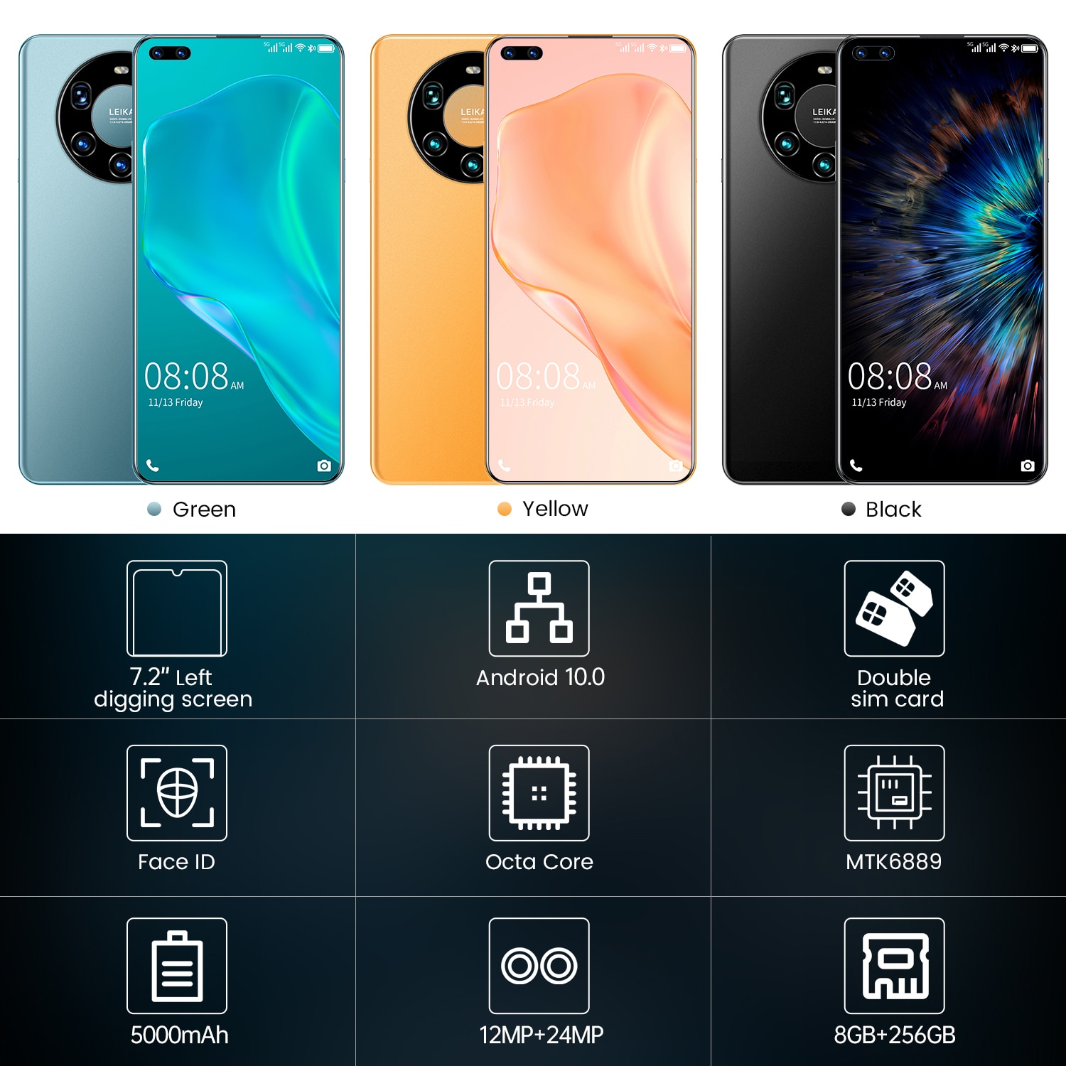 Full Screen Octa Core 5000mAh 8GB 256GB 4G LTE 5G Network Mobile Phone