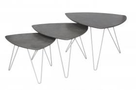 Cannon Nest of Tables Stone with White Metal Legs