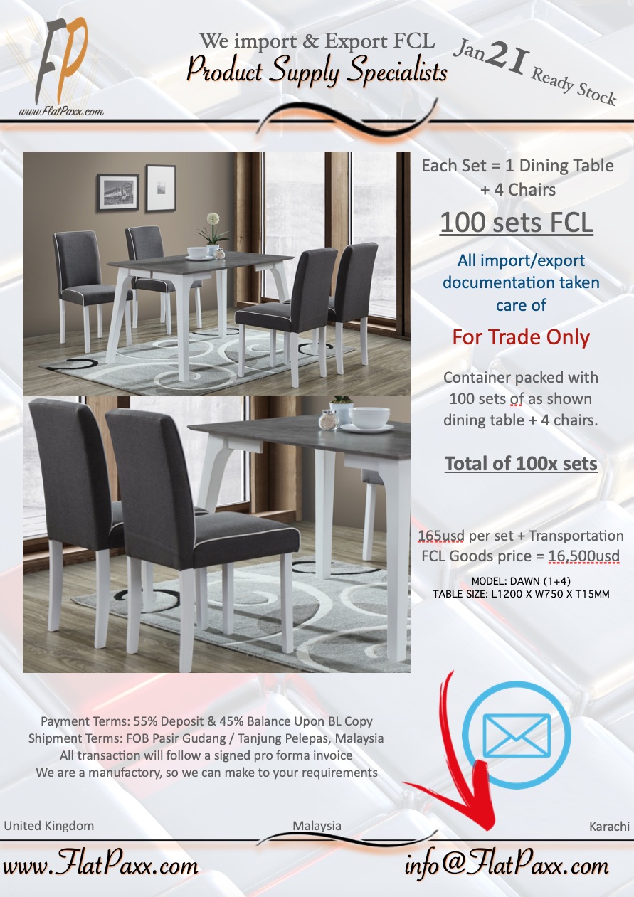 FCL ( Full container Load) x100 Dining Tables + 4x chairs per set